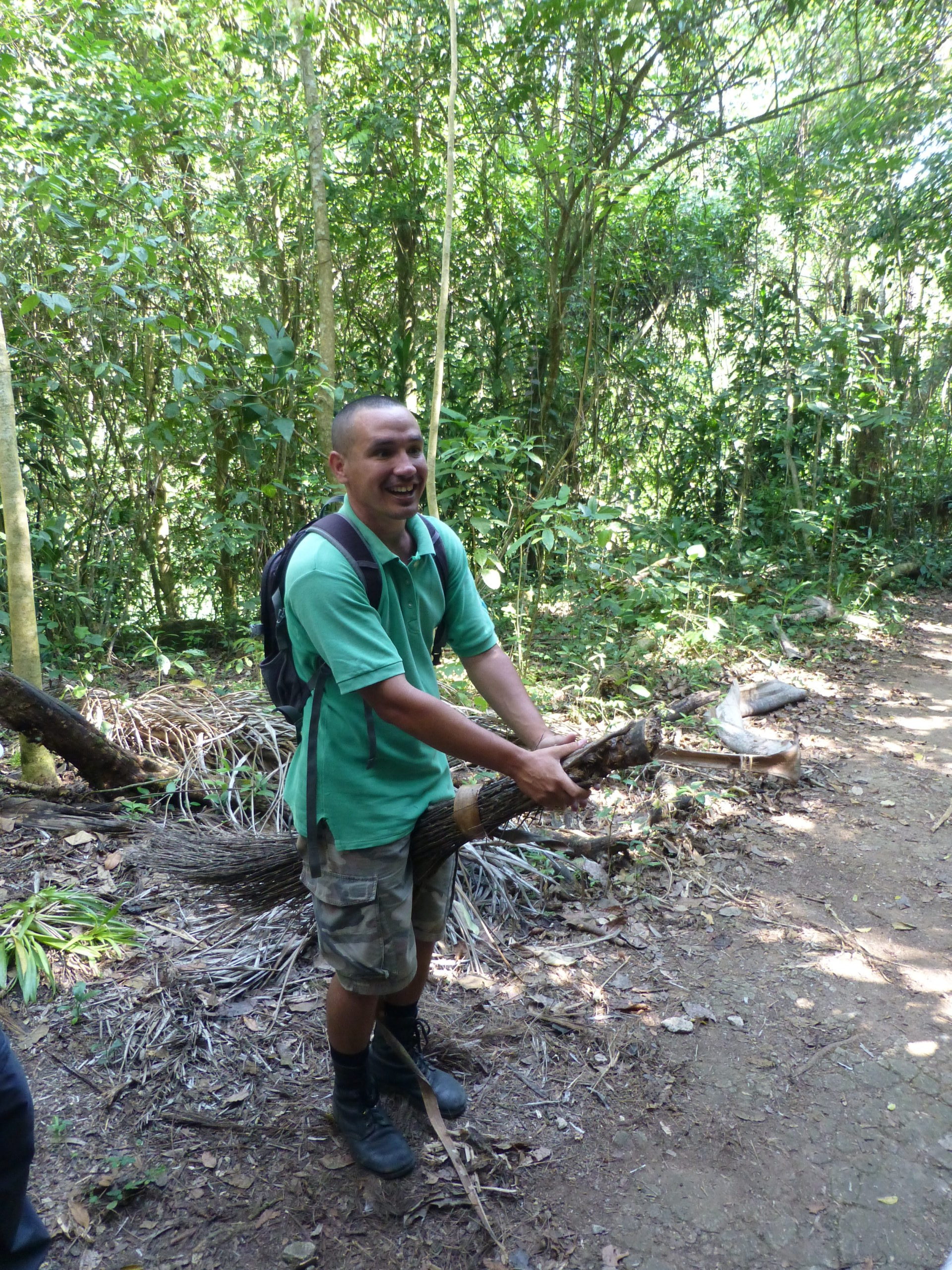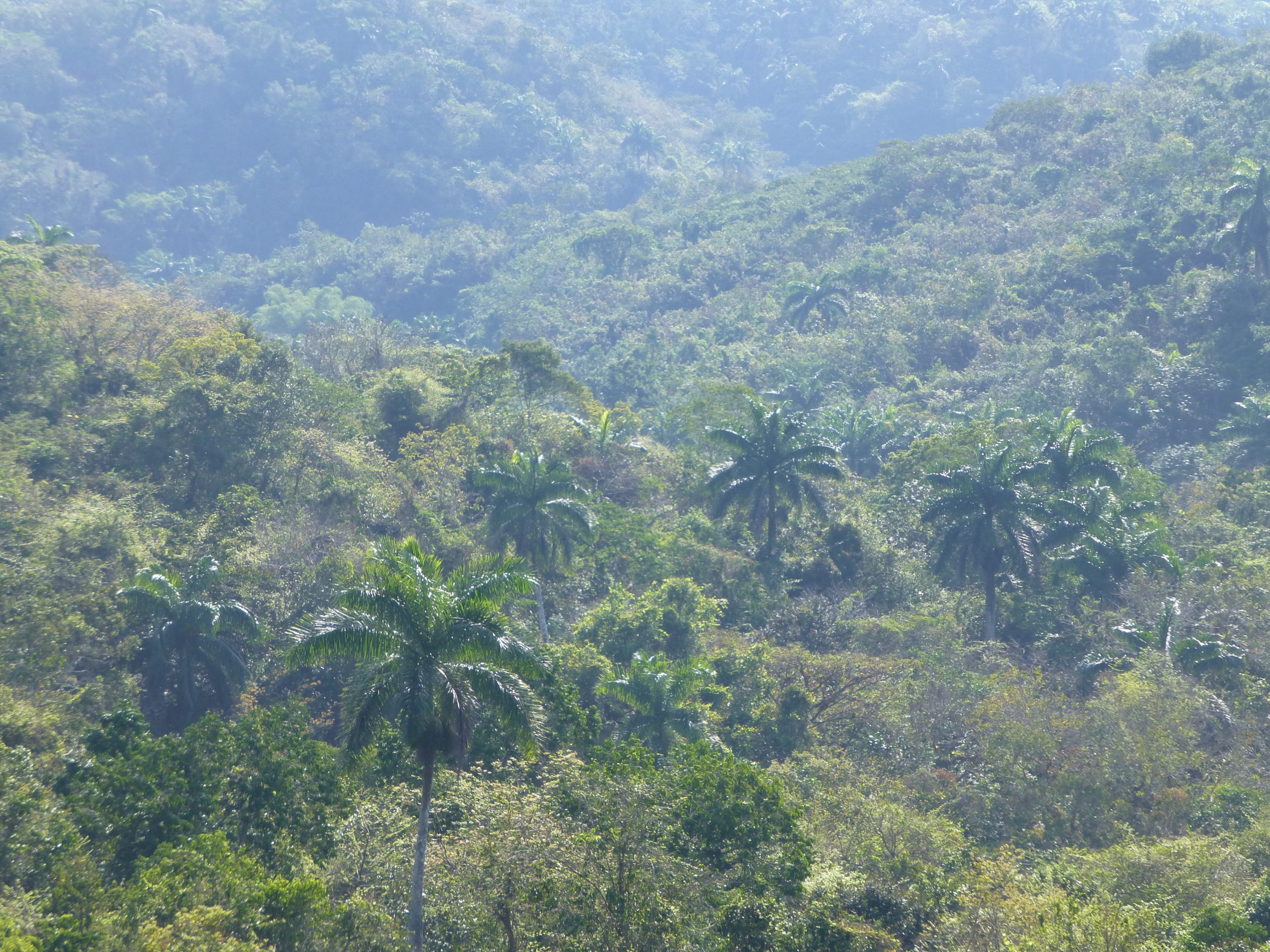 Cestou nám Rey zase vyprávěl a ukazoval. Viděli jsme například kubánský národní strom, kterým nemůže být nic jiného než Kubánská královská palma. Je děsně vysoká a Kubánci z ní dovedou zužitkovat prakticky úplně všechno. Dřevo na stavby, listy na střechu, z kořenů se připravují léky, ze semen se lisuje olej a plody krmí dobytek. Navíc tato palma zastává svou roli v santerijském náboženství. Z listů, když trošku vyschnou, se také řežou takové úzké proužky a používají se jako lana. Jsou velice pevné, člověk je nepřetrhne ani za nic, což Rey hned demonstroval na Mílovi. Na vrcholku palmy jsou plody, které rostou v hustém podloží z listů, jež opadávají v takových jakoby snopech. Vypadá to jako proutěné koště.
