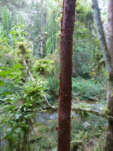 to vyháže ven (včetně mláďat) a zařídí si interiér po svém. Pěkná paralela k příjezdu Španělů na Kubu v šestnáctém století. Viděli jsme i turistický strom. Prý se mu tak říká proto, že jeho kůra je červená, spálená a loupe se. Také jsme viděli kolibříky. Jednoho jsme si vyfotili už včera při obědě, jak nehybně „visí“ ve vzduchu a pochutnává si na nějaké květině. Před dvanáctou hodinou jsme dorazili ke druhému vchodu do parku, kam pro nás mezitím přijelo naše auto. Naskákali jsme a vyrazili na oběd.